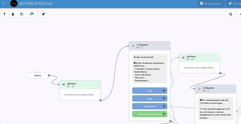 • написали чат-бота который собирает заявки и если клиент оставил номер телефона, то диалог с ним отправляется администратору школы танцев